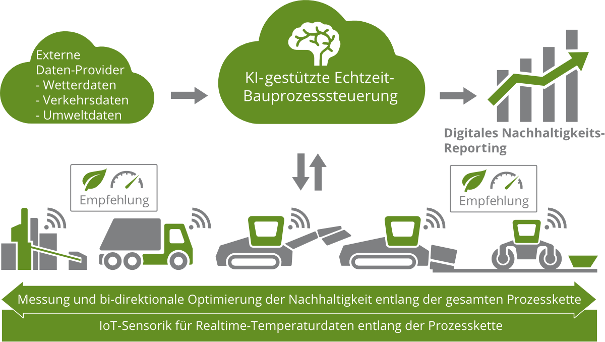 Entwicklung einer digitalen Echtzeitsteuerung von Bauprozessen mittels Verfahren der Künstlichen Intelligenz zur In-Process-Erhöhung der Nachhaltigkeit.